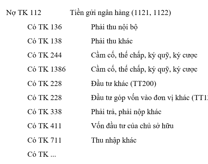 Nợ TK 112: Tiền gửi ngân hàng (1121, 1122)