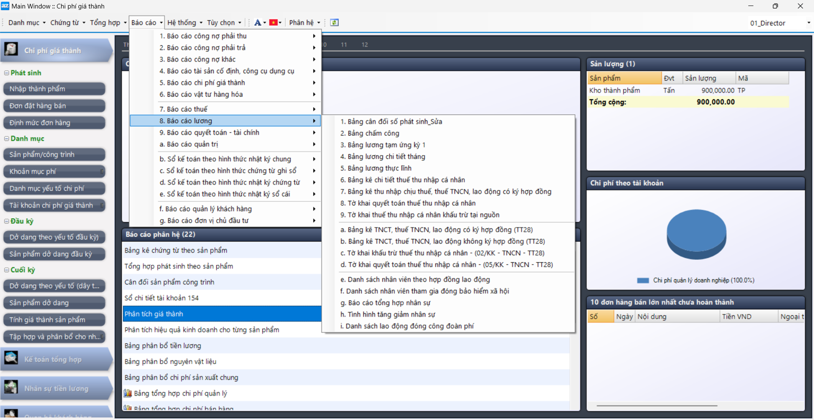 - Từ menu Bao cao bạn chọn Báo cáo lương
