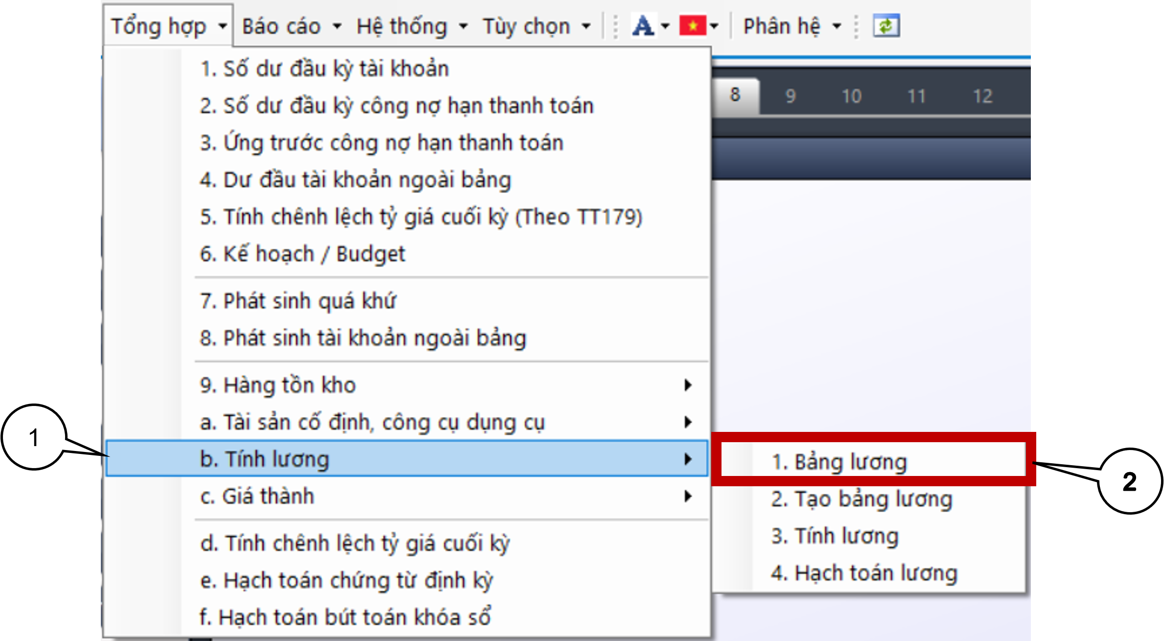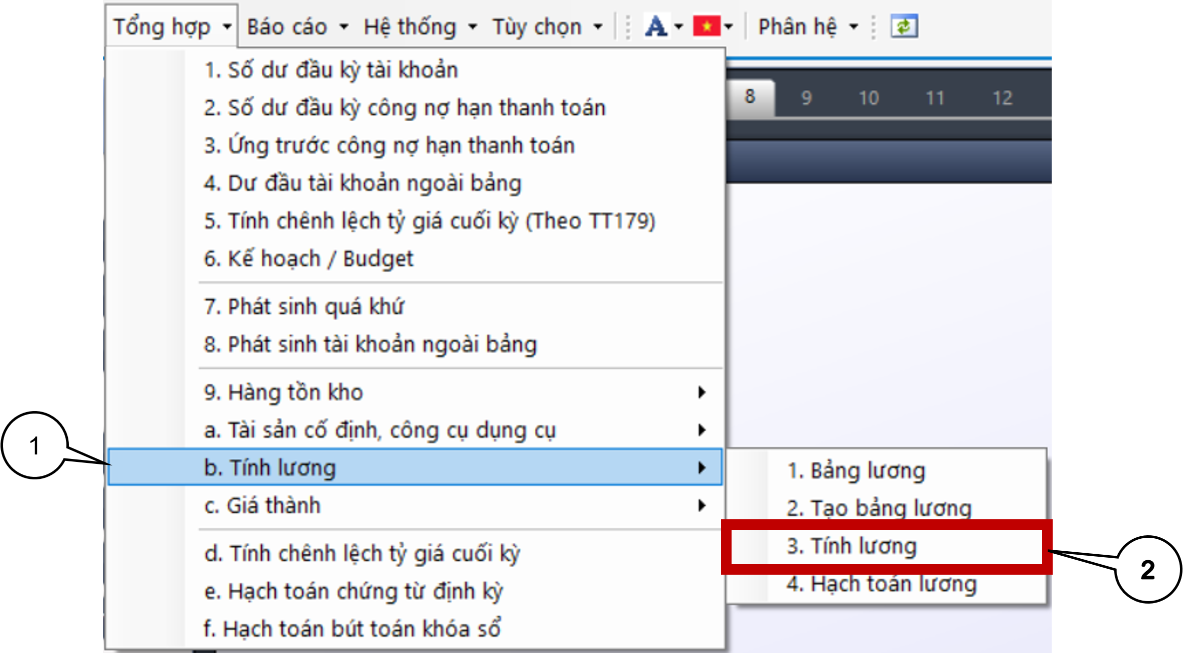 Bước 1: Vào phân hệ Tổng hợp chọn Tính lương