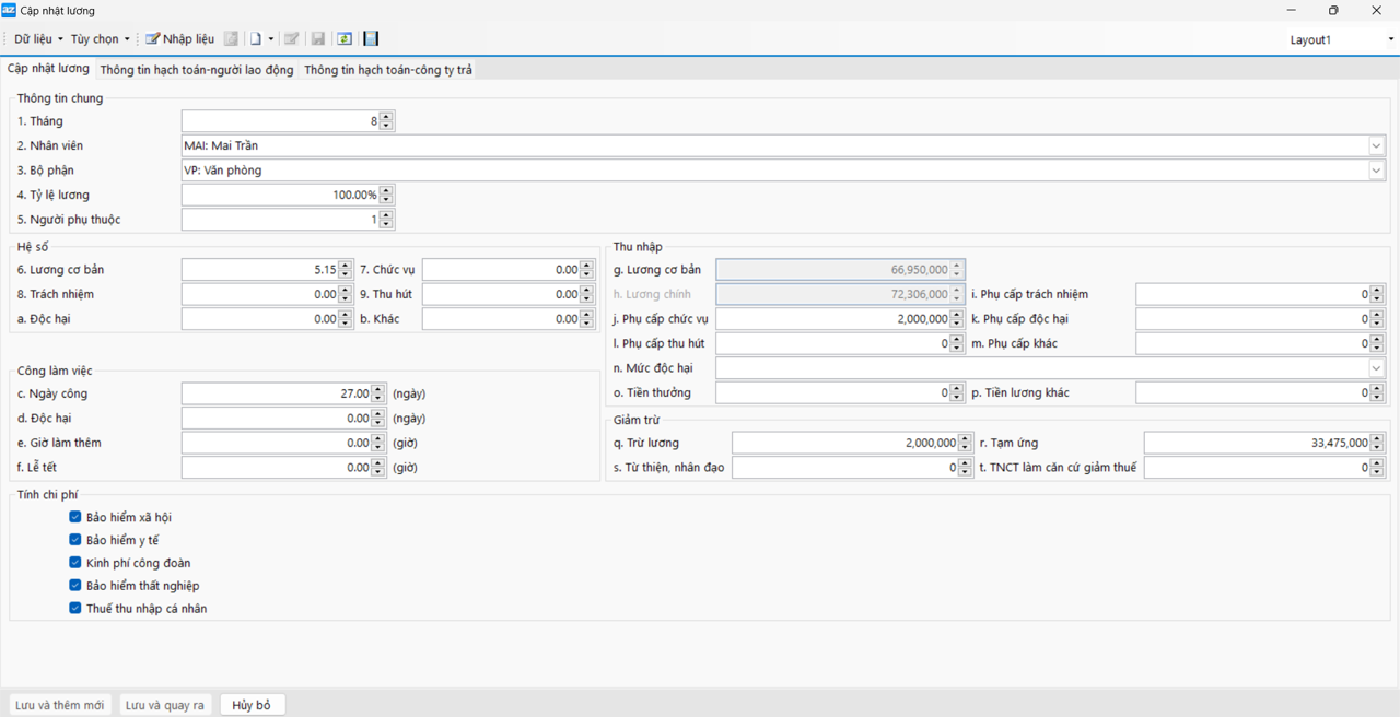 2. Cập nhật và tính lương