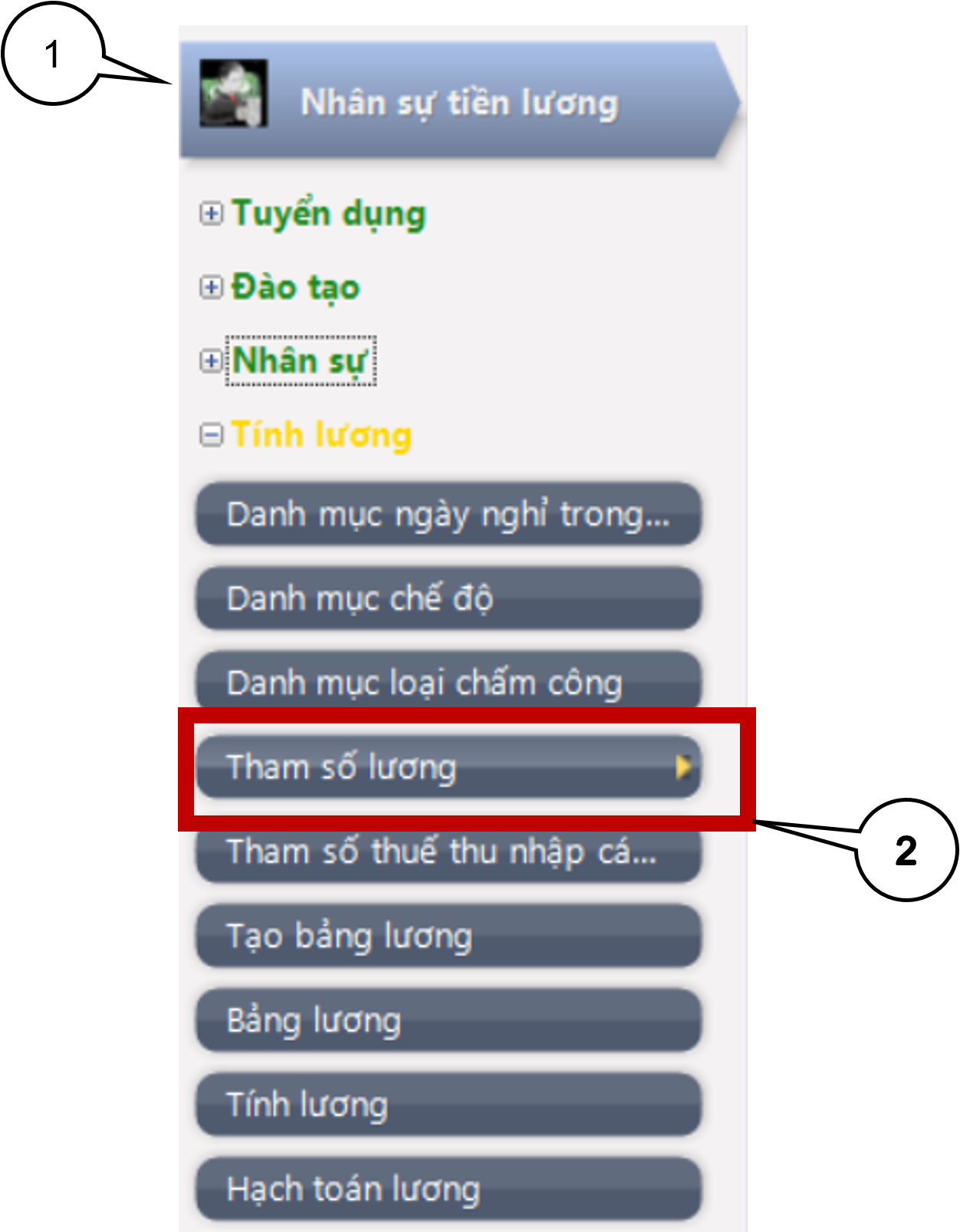 Bước 1: Vào phân hệ Nhân sự tiền lương, chọn Tham số lương