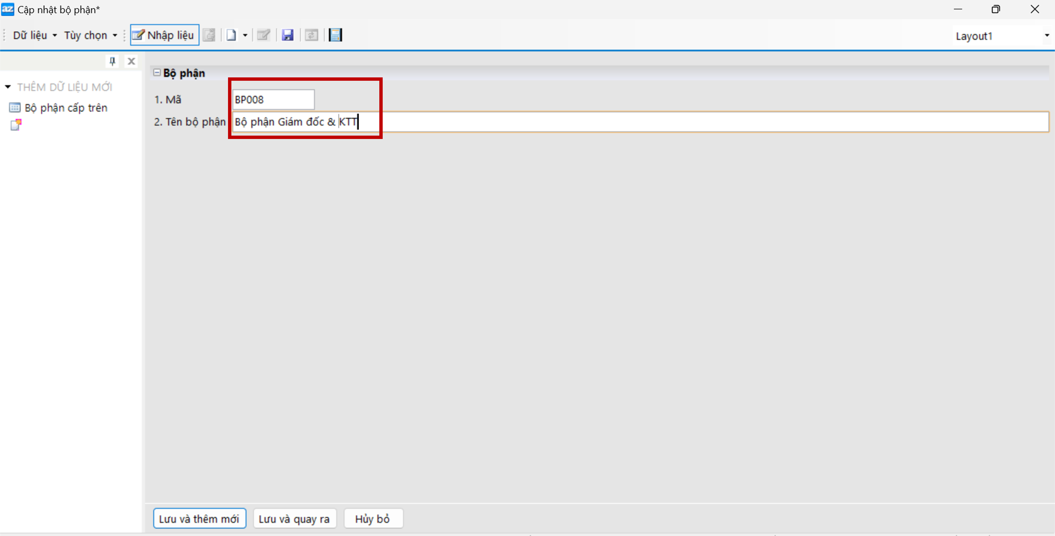 4. Nhấn Lưu và thêm mới hoặc Ctrl + Enter sau khi khai báo xong.