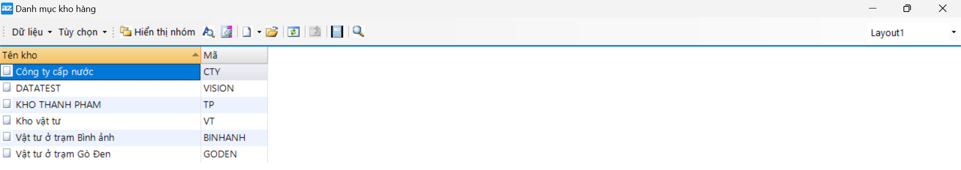 | Tên kho | Tên kho vật tư hàng hoá, lưu trữ tối đa 64 ký tự. |
