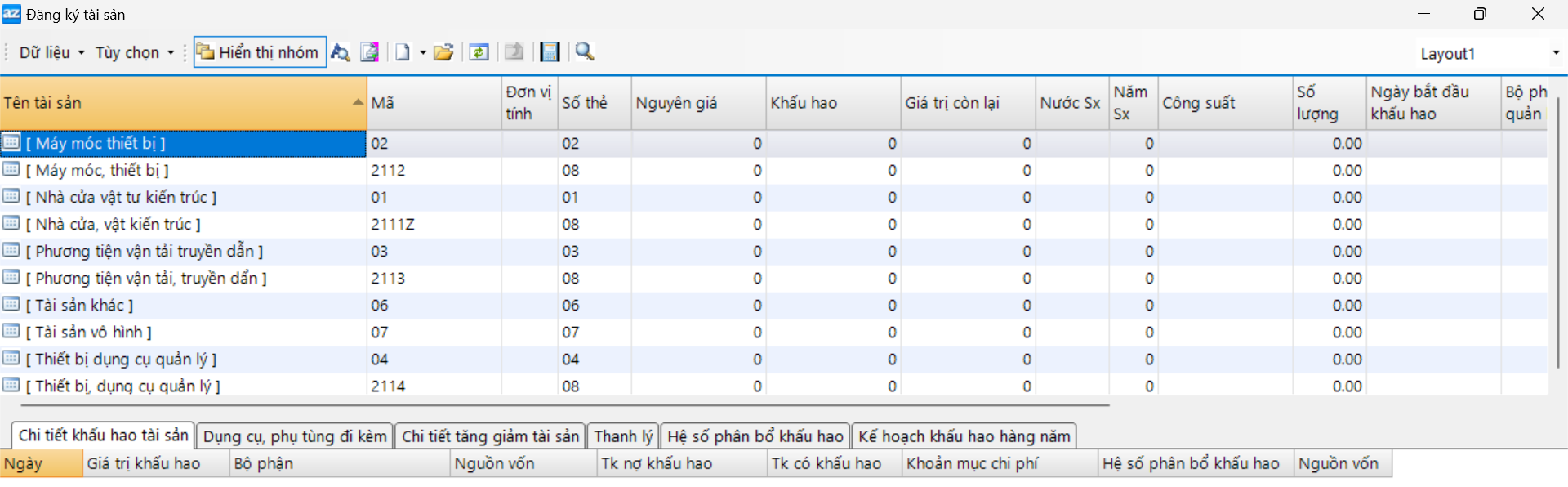 Danh mục nhóm tài sản dùng để khai báo các nhóm cho danh mục tài sản.