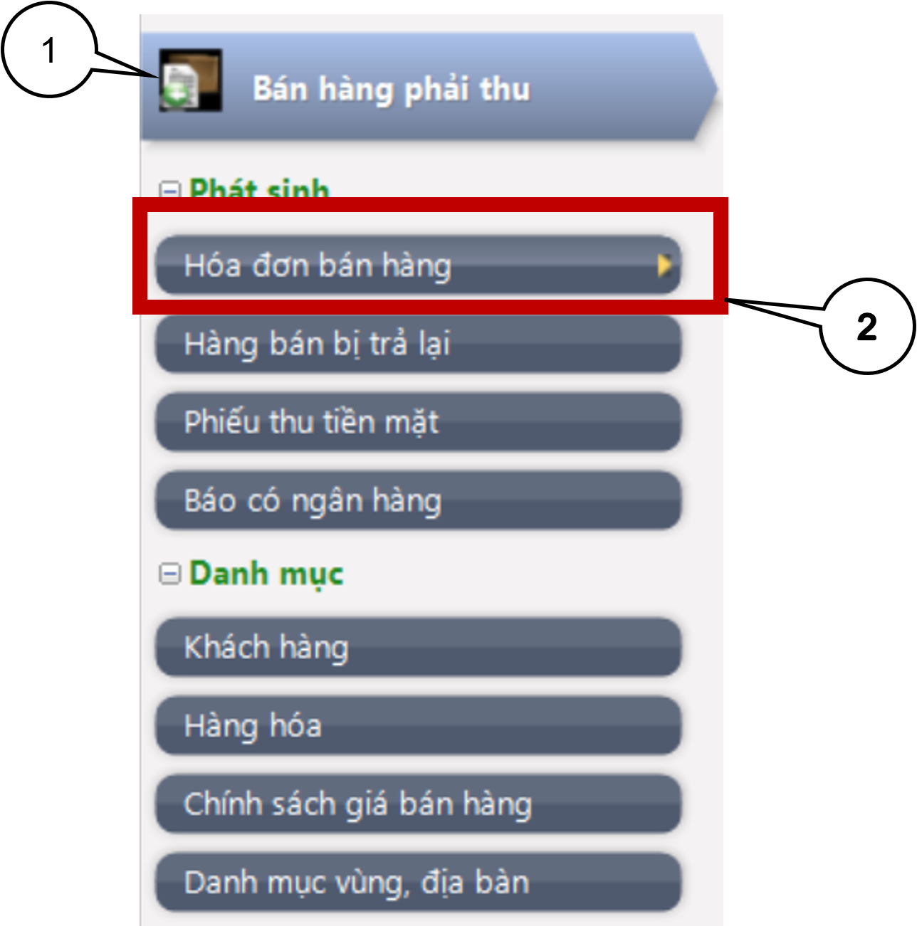 Bước 1: Vào phân hệ Bán hàng phải thu, chọn Hoá đơn bán hàng (hoặc vào Chứng từ \a.Hoá đơn bán hàng).