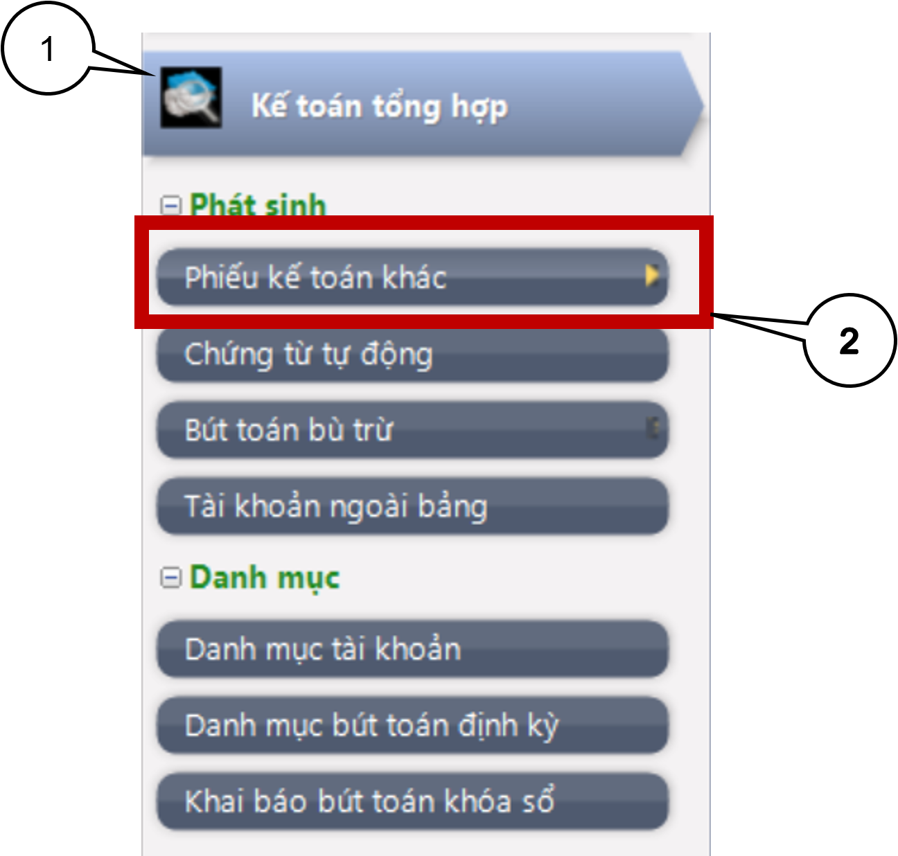 Bước 1: Vào phân hệ Kế toán tổng hợp chọn Phiếu kế toán khác hoặc chọn (Chứng từ\f. Phiếu kế toán khác)