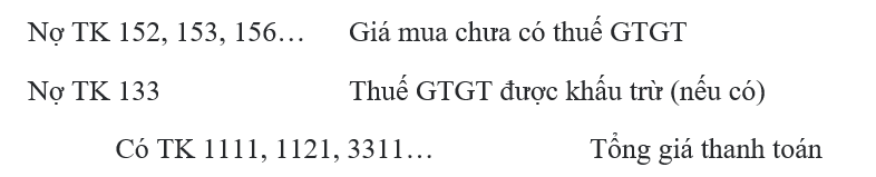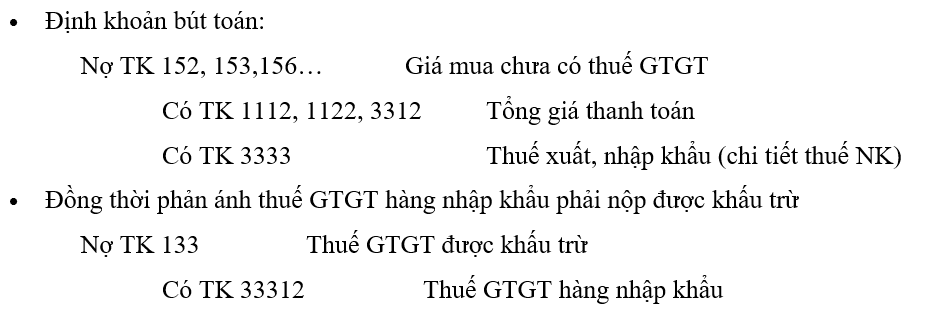 Mua nguyên vật liệu, hàng hóa nhập khẩu về dùng cho hoạt động sản xuất, kinh doanh hàng hóa, dịch vụ chịu thuế GTGT tính theo phương pháp khấu trừ.