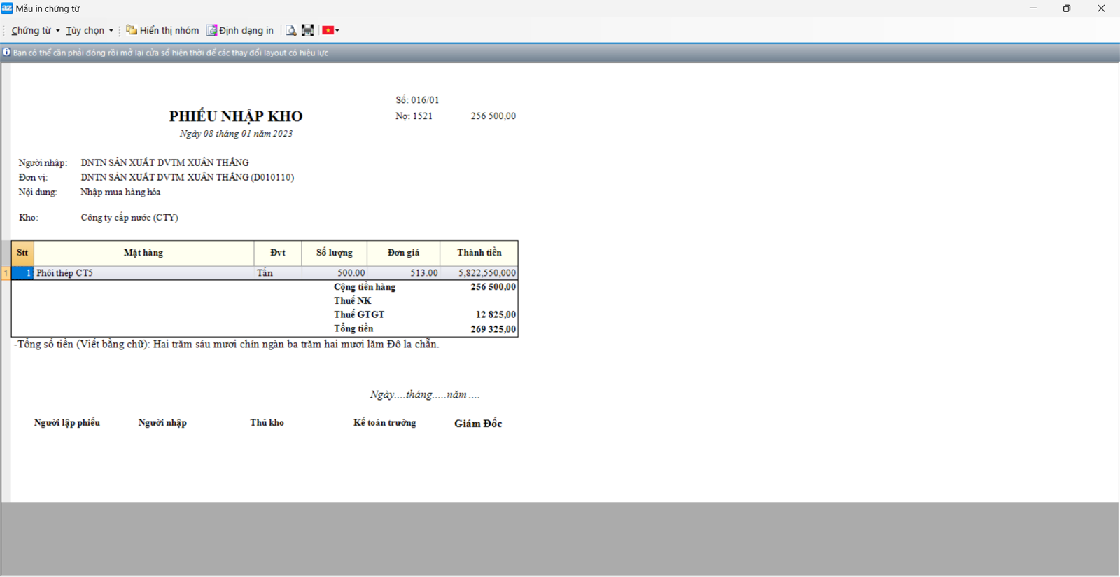 Xem chứng từ trước khi in