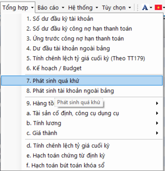 1. Vào Tổng hợp\Phát sinh quá khứ