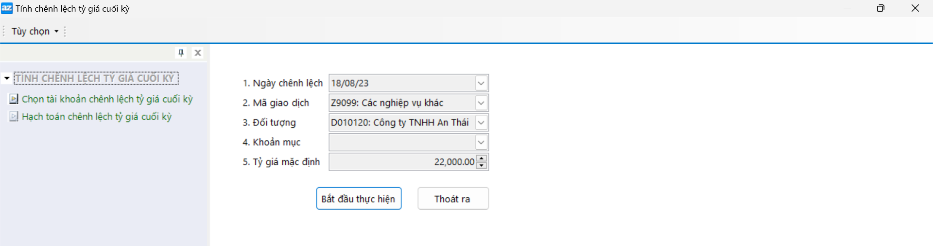 Nhấn OK và chương trình sẽ được tự động tính chênh lệch tỷ giá