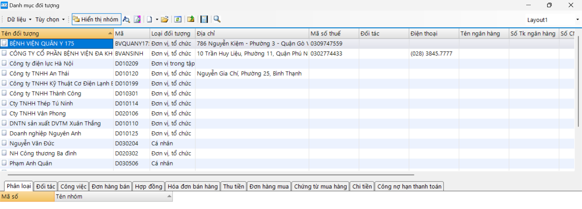 Danh mục đối tượng dùng để khai báo các đối tượng công nợ như là người mua, người bán, tạm ứng, đơn vị thành viên,...