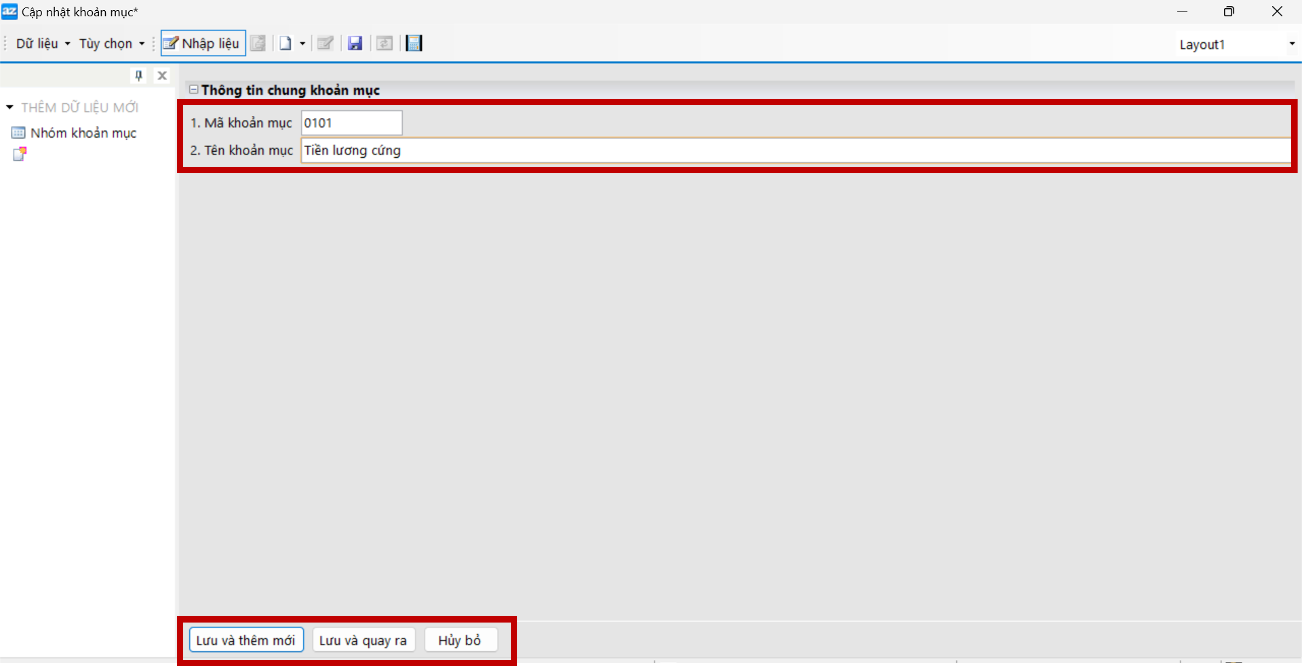 4. Nhấn Lưu và thêm mới hoặc Ctrl + Enter sau khi khai báo xong.