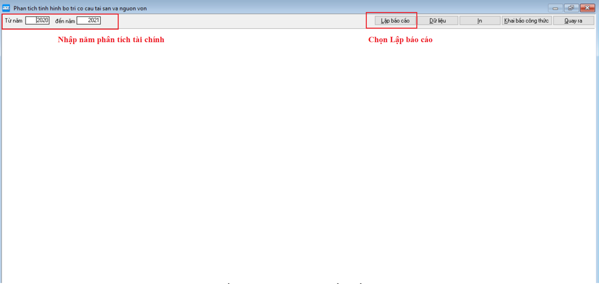 Bước 3: Màn hình báo cáo xuất hiện chọn năm cần theo dõi, so sánh các chỉ tiêu tài chính sau đó nhấp chọn nút “Lập báo cáo”.