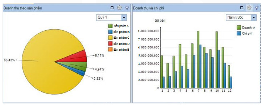 Sau đó chương trình sẽ xuất hiện theo dạng biểu đồ phân tích tài chính của doanh nghiệp: