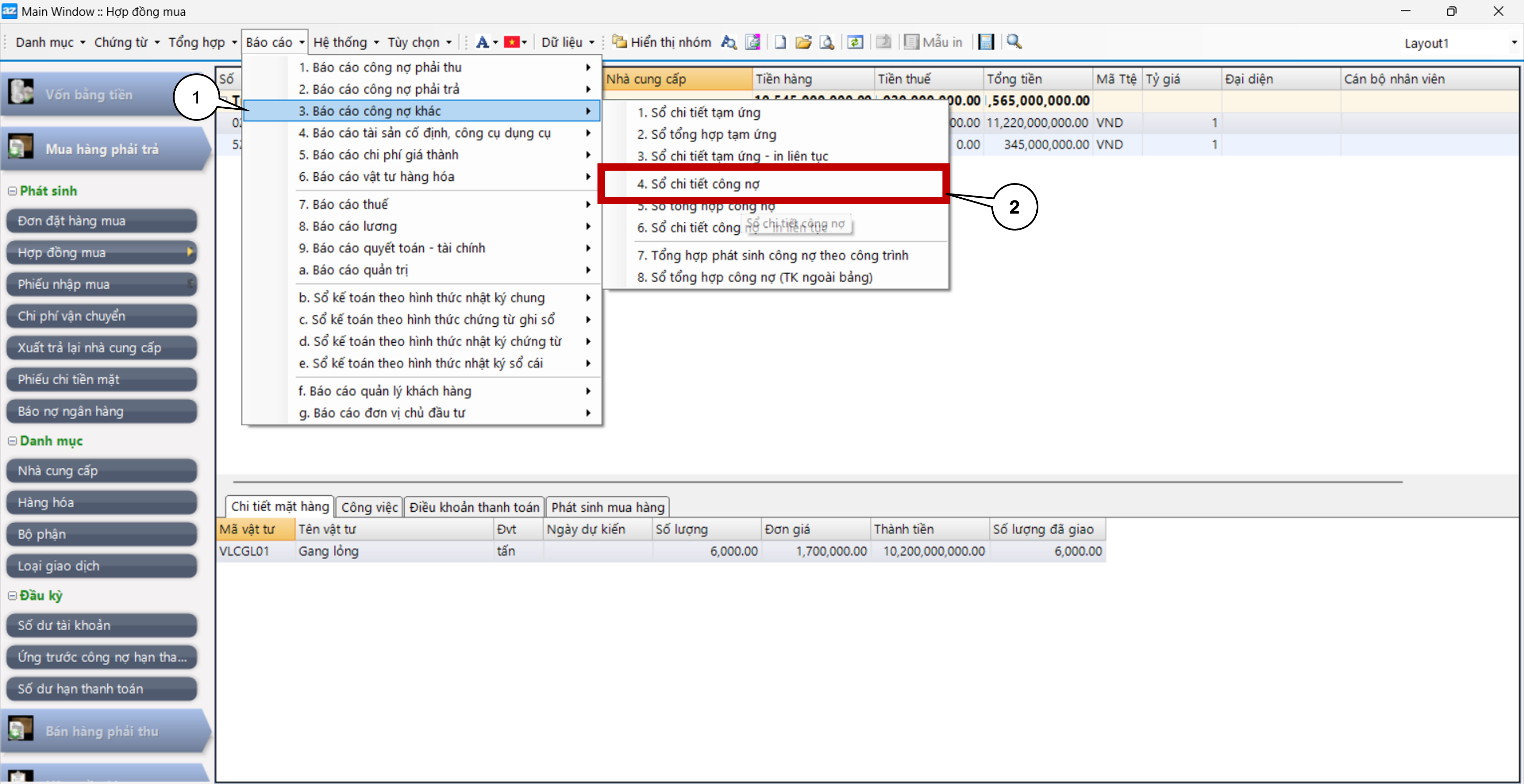 Bước 4: Lên các báo cáo hạn thanh toán: Người sử dụng có thể tìm thấy các báo cáo liên quan đến hạn thanh toán trong submenu “Bao cao\Báo cáo công nợ”.