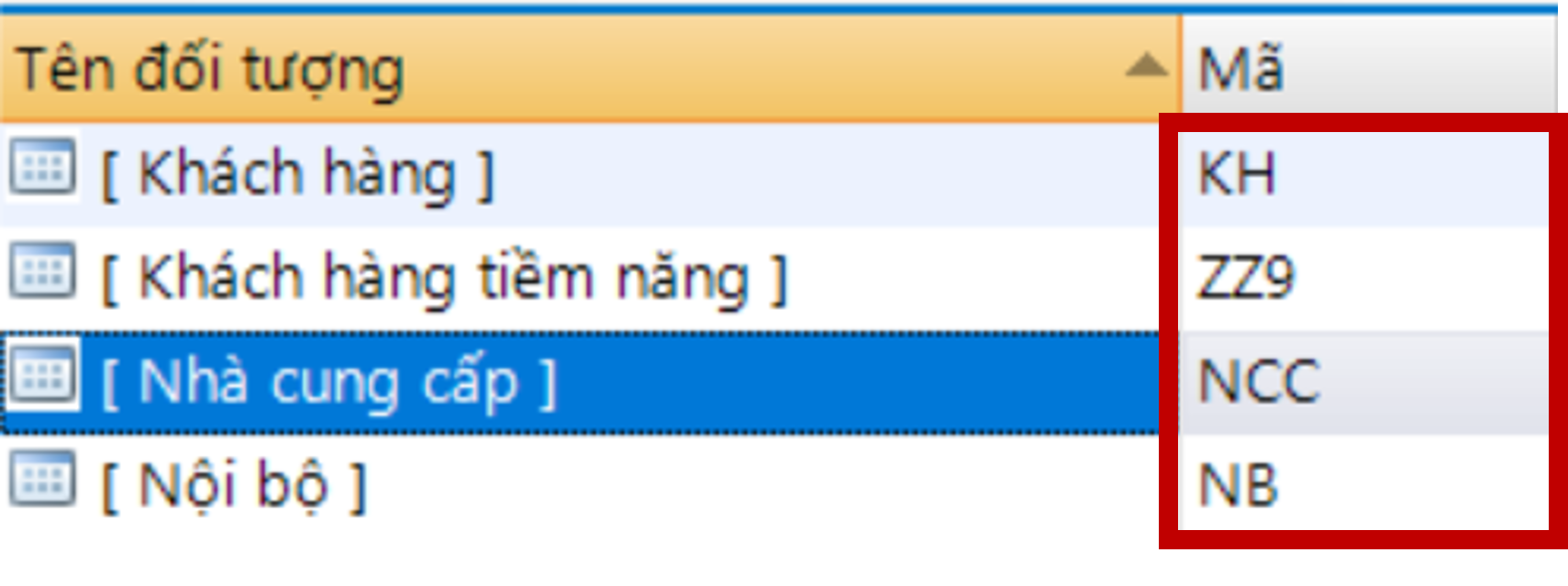 - Số lượng ký tự của mã phải nhỏ hơn hoặc bằng độ rộng của trường mã.